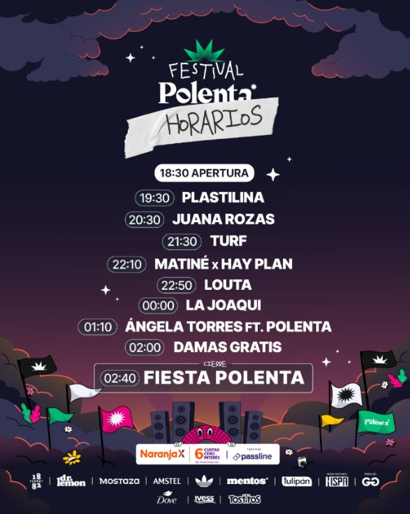 Desde las 18:30 hs , el público podrá disfrutar de un recorrido sonoro diverso y vibrante que refleja el espíritu del festival: compartir, bailar y celebrar con amigos. Con apertura de puertas a las 18:30 hs, el atardecer de Buenos Aires le dará la bienvenida a las miles de personas que esperan la primera entrega de la exitosa Fiesta Polenta, esta vez, en un formato de mega festival.