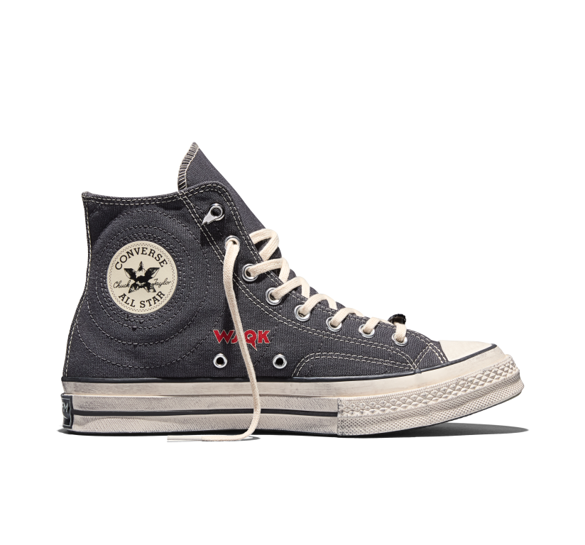 Su diseño resalta la estética de los ’80 con estampas audaces y una capellada de lona desgastada con look vintage. Estilo icónico—pero un poco más extraño—con referencias ocultas y detalles inspirados en los personajes para que los descubras. Las Converse x Stranger Things Chuck 70 presentan una parte superior de lona de efecto desgastado adornada con el logo de la emisora de radio WSQK y ondas de sonido bordadas.