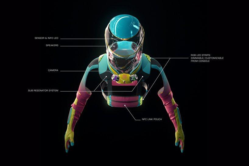 Es un atuendo pensado para asistir a conciertos y festivales. Incluye un casco suave, un filtro N95, tela resistente y durable y fácil de lavar y desinfectar. Cuenta con la opción de ser manipulado a través de una app en el celular y tiene un software que permite controlar el audio individualmente según la fuente de la que provenga. También tiene un sistema de audio para escuchar música en vivo directamente desde el DJ o la banda o una emulación de cómo se escucharía el sonido en ese espacio.
