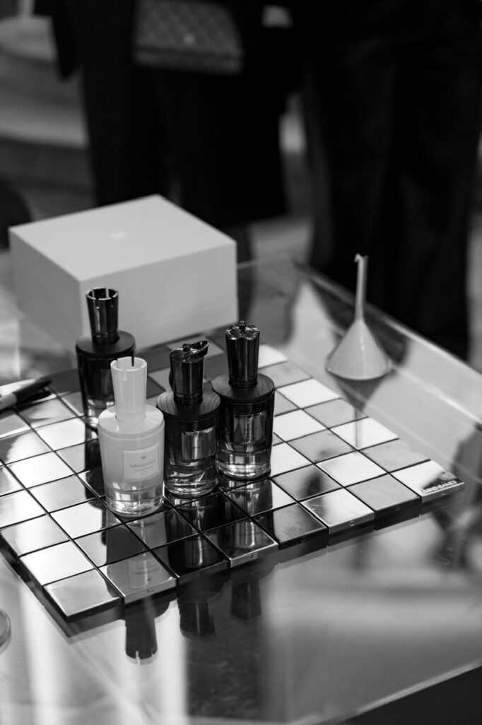 La identidad de MIND GAMES se apoya en tres pilares fundamentales. En primer lugar, un storytelling conceptual en el que cada perfume evoca un movimiento o momento clave del ajedrez, transformando la fragancia en una experiencia narrativa. En segundo lugar, la artesanía perfumista, desarrollada junto a maestros perfumistas de la casa Symrise y basada en el uso de materias primas seleccionadas para lograr composiciones complejas y distintivas.