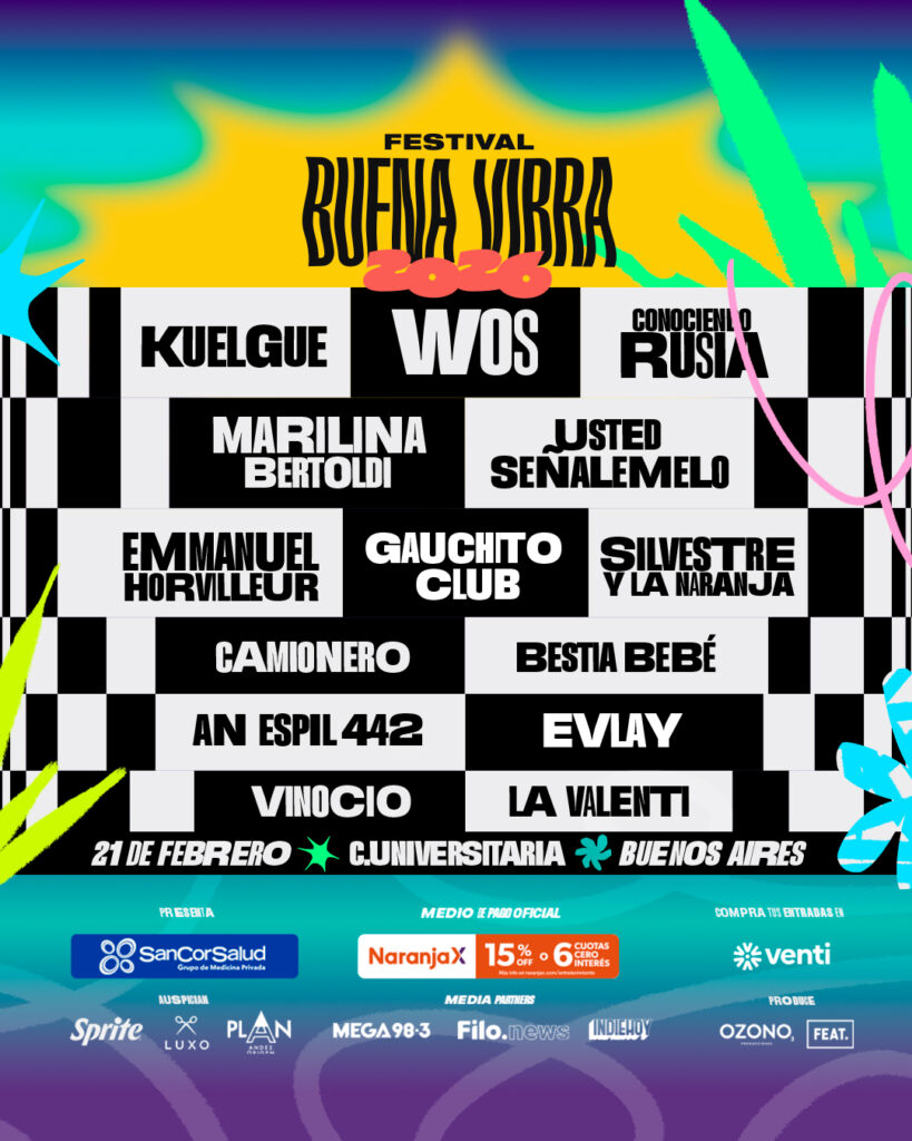 Buena Vibra, el ya clásico festival del verano porteño, anuncia su edición 2026 y confirma su regreso el 21 de febrero en Ciudad Universitaria, con un line-up que reúne lo mejor de la música local y la nueva escena. Entradas a la venta en www.venti.com.ar