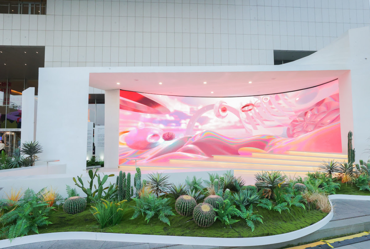 La tercera obra proyectada en la pantalla principal es Shell Palace, un cortometraje de animación digital realizado en 2023 y estrenado como instalación audiovisual en Prince Bay Garden City, Shenzhen, China, frente al Sea World Culture and Arts Center. En esta pieza, Gutierrez construye un universo visual donde formas iridiscentes, estructuras arquitectónicas y superficies pulidas se articulan en una exploración de paisajes artificiales que evocan referencias mitológicas y geológicas sin recurrir a la representación naturalista. Shell Palace propone una experiencia contemplativa dentro de un entorno completamente sintético, donde la luz, la textura y el movimiento definen una narrativa abstracta sostenida por un diseño sonoro envolvente.