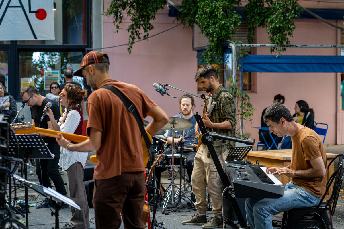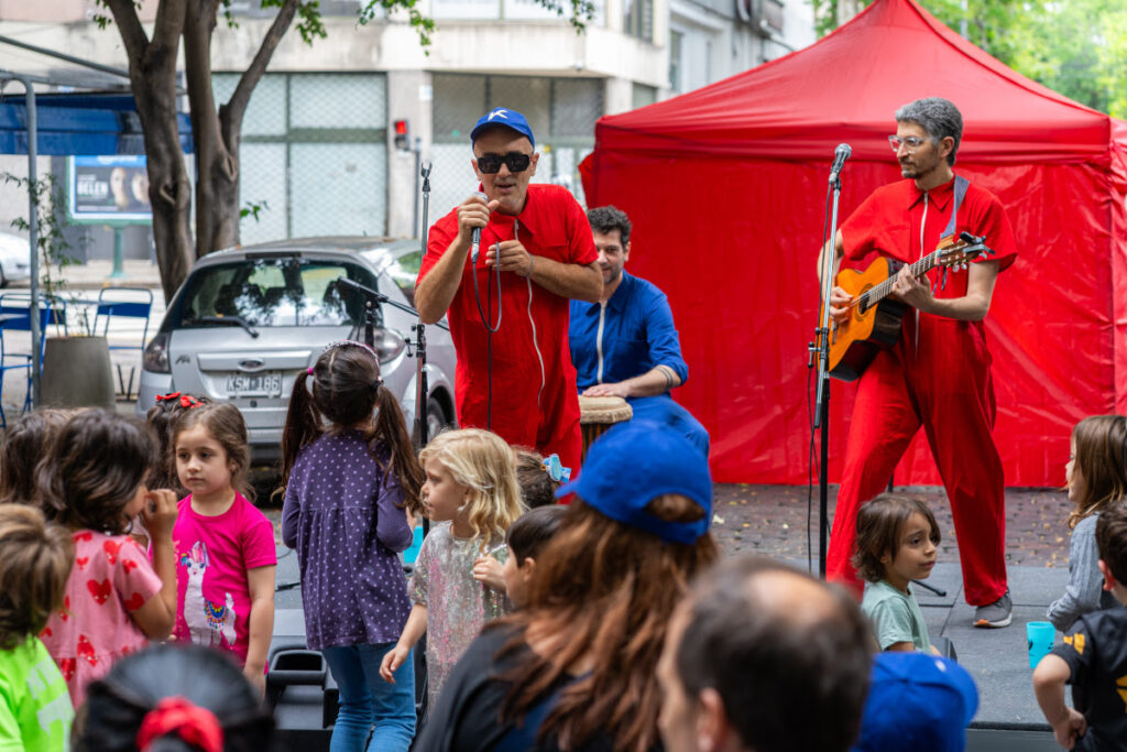 El segundo día ofreció una verdadera celebración barrial al aire libre. La feria de emprendedores y el escenario en plena calle convocaron a familias, curiosos y habitués del centro cultural. La banda Koufequin inauguró la tarde con un show para infancias que derivó en un feliz minipogo improvisado. Luego, Darío Sztajnszrajber ofreció una charla sobre el domingo y la amistad, que captó la atención de un público diverso.