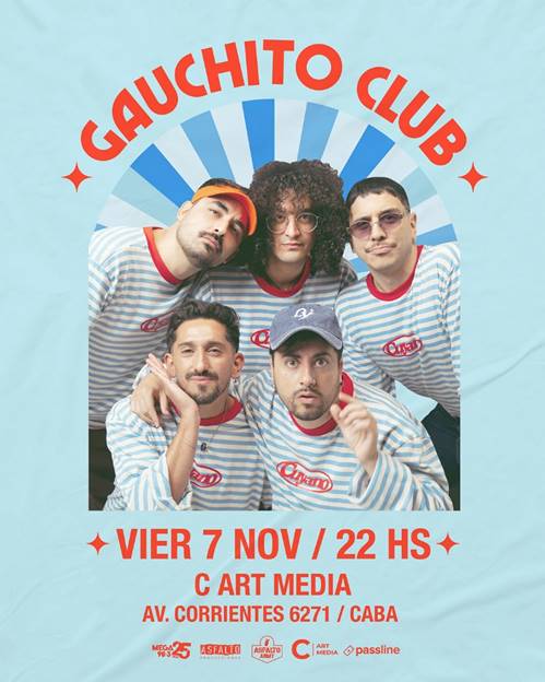 Este 7 de noviembre, la banda de Gabriel Nazar (voz, guitarra nylon), Sasha Nazar (voz y bajo), Julián Bermejo (guitarra eléctrica y coros), Nahuel Quimey Chandia (percusión) y Ale Rezk (saxo) llega al Art Media para despedir el año en Buenos Aires. Tras agotar en menos de una semana su último show en capital, y después de dar vuelta un Obras inolvidable, Gauchito vuelve con una última fecha especial que promete ser el cierre perfecto de un 2025 arrasador.