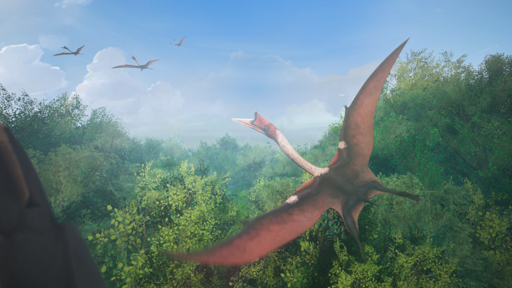 Durante 45 minutos, los visitantes recorren distintos paisajes prehistóricos que reconstruyen momentos clave de la evolución y extinción de las especies.