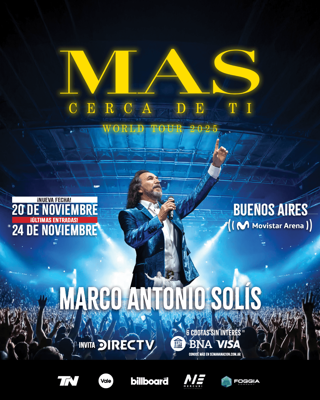 Ambos shows en el Movistar Arena prometen ser citas inolvidables, con puestas en escena majestuosas, sonido de primer nivel y el carisma único de Marco. Serán dos noches cargadas de emoción, poesía y cercanía.