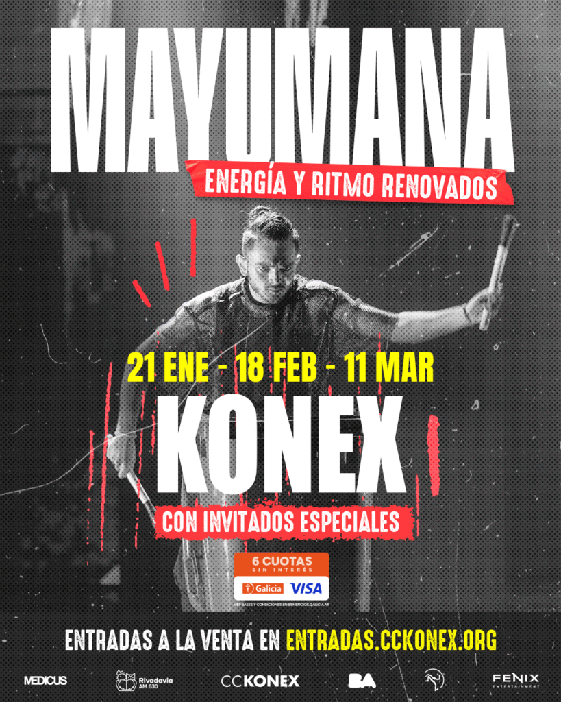 Desde su creación en 1996, Mayumana es una compañía reconocida por su estilo inconfundible. Ha compartido escenario con artistas como Bobby McFerrin, David Broza, Tiesto, y ha sido definida por medios internacionales como “la startup cultural más exitosa” (Yedioth Ahronoth) y “una fiesta del ritmo” (ABC). Ahora, gracias a Fénix Entertainment, Mayumana se conecta con el público argentino, reconocido por su pasión, sensibilidad artística y energía escénica.