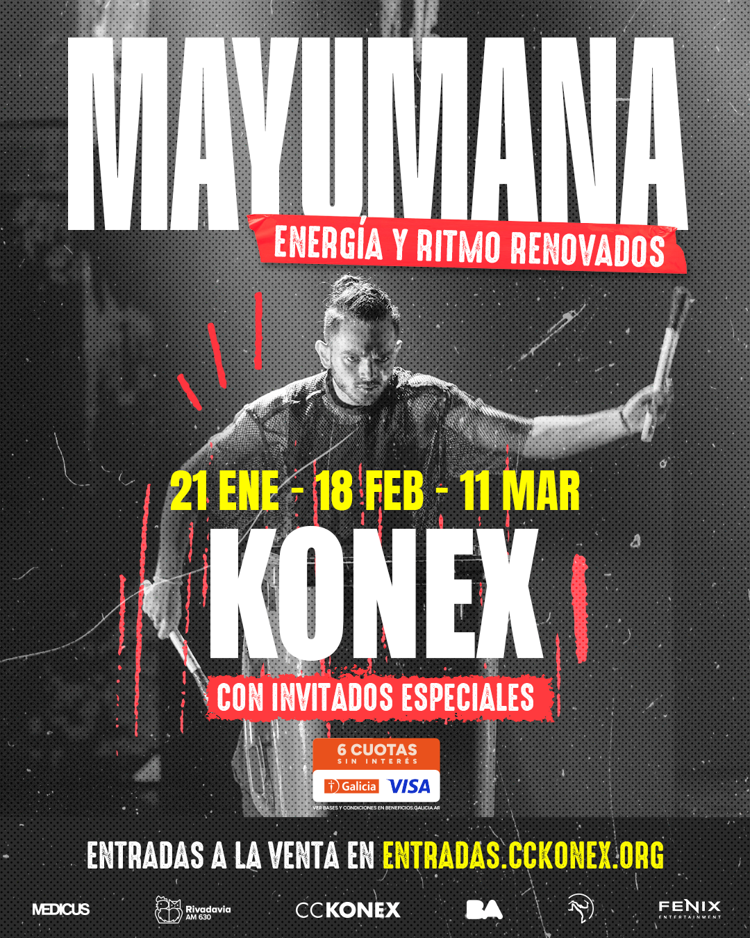 Con producción de Fenix Entertainment, el fenómeno escénico volvió después de conquistar más de 40 países y cautivar a más de 15 millones de espectadores. Ahora en el Konex, el espectáculo que fusiona ritmo, movimiento y humor contará con la presencia de artistas y bandas invitadas.