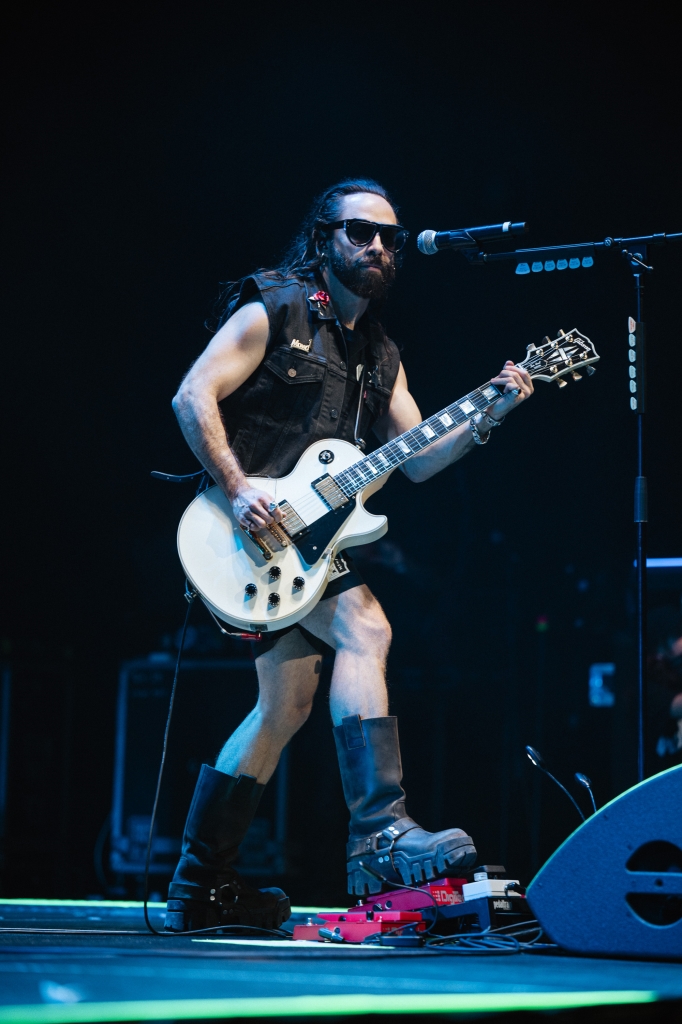 La banda —compuesta por Micky Huidobro, Tito Fuentes, Randy Ebright y Paco Ayala — se mostró afilada, dinámica y con una química inobjetable. Jay de la Cueva, quien volvió a Molotov para esta gira aniversario, aportó una dosis extra de carisma y soltura, bromeando con el público y rotando instrumentos junto al resto de los músicos. El corazón del show llegó con canciones como “Frijolero” y “Gimme tha Power ”, coreadas a todo pulmón por los fans. Después de todo, Molotov siempre se destacó por estas canciones de crítica social y grito colectivo.