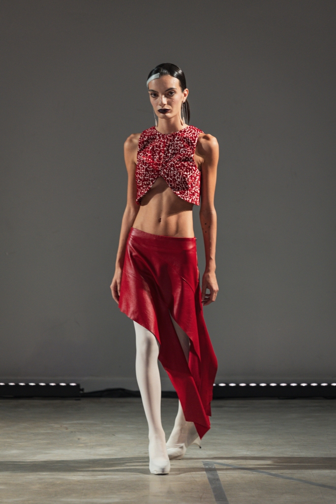 Para el cierre, Luz Ballestero volvió a las pasarelas que la vieron crecer y, tras diez años desde su última presentación, regresó con «Escenas de Desborde». El desfile de su colección AW26, inspirado en el universo visual de Pedro Almodóvar, fue concebido como una secuencia narrativa en cinco actos, combinando pasarela y escenas teatrales como forma de exploración de esos instantes en los que el equilibrio se rompe y da lugar a una nueva forma.
