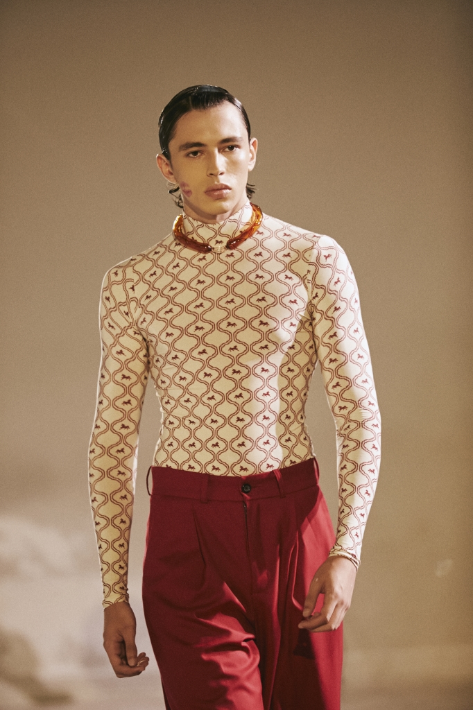Por la tarde, Sadaels presentó «Caballo > Mujer > Hombre», una colección que imagina una nueva jerarquía simbólica para el presente. Inspirada en el año del Caballo de Fuego, la propuesta tomó la figura de este animal como emblema de energía, poder y transformación, construyendo un relato donde identidad y movimiento se reconfiguran.