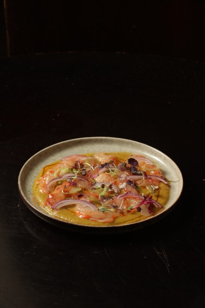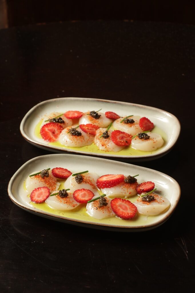 Al frente de la cocina, Facundo Connio —especialista en técnicas al fuego que exaltan la estacionalidad, la textura y la pureza de cada ingrediente— propone una carta donde brillan los crudos de vieiras o langostinos, los langostinos al ajillo, el pulpo a la parrilla, las pescas enteras del día y el arroz del mar, un plato que celebra el encuentro entre el océano y las brasas. “Nuestra cocina nace del fuego, pero también del paisaje. Cocinamos rodeados de bosque y mar, y eso nos marca. Queremos que cada plato tenga ese espíritu: honestidad, producto y una sencillez que deje que los sabores hablen por sí mismos”, afirma el chef.