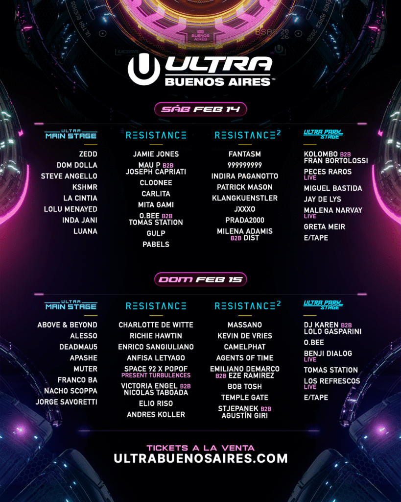 ULTRA Buenos Aires anunció los lineups diarios por escenario de su esperada sexta edición, que se llevará a cabo el sábado 14 y domingo 15 de febrero de 2026 en el Parque de la Ciudad.